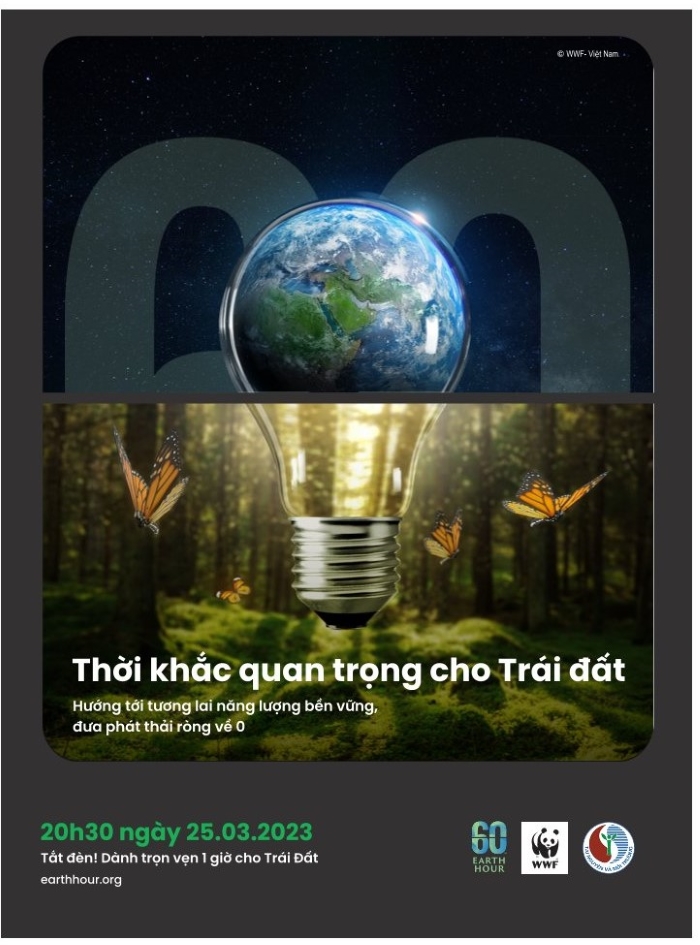Chiến dịch Giờ Trái đất năm 2023 được Tổ chức Quốc tế về Bảo tồn thiên nhiên (WWF) phát động với chủ đề “The Biggest Hour for Earth” –“Thời khắc quan trọng cho Trái đất”. Thông điệp nhằm nhấn mạnh đây là thời điểm chúng ta cần thay đổi, thúc đẩy mạnh mẽ hơn để đảm bảo các mục tiêu toàn cầu về đa dạng sinh học; kêu gọi toàn thể cá nhân, cộng đồng cùng hành động để thích nghi và thay đổi tiến trình biến đổi khí hậu, hướng tới phục hồi thiên nhiên và đa dạng sinh học trong thập kỷ này, chống lại tình trạng suy giảm môi trường sống. Đây là điều kiện tiên quyết để tăng cường sức khỏe, sự đa dạng phong phú của các loài, quần thể và hệ sinh thái. Đồng thời, đây cũng là thời điểm thực hiện hóa các mục tiêu của Việt Nam tại Hội nghị Thượng đỉnh về Biến đổi khí hậu của Liên Hợp quốc lần thứ 27 (COP27), sử dụng năng lượng bền vững và hướng tới tương lai 100% năng lượng tái tạo.